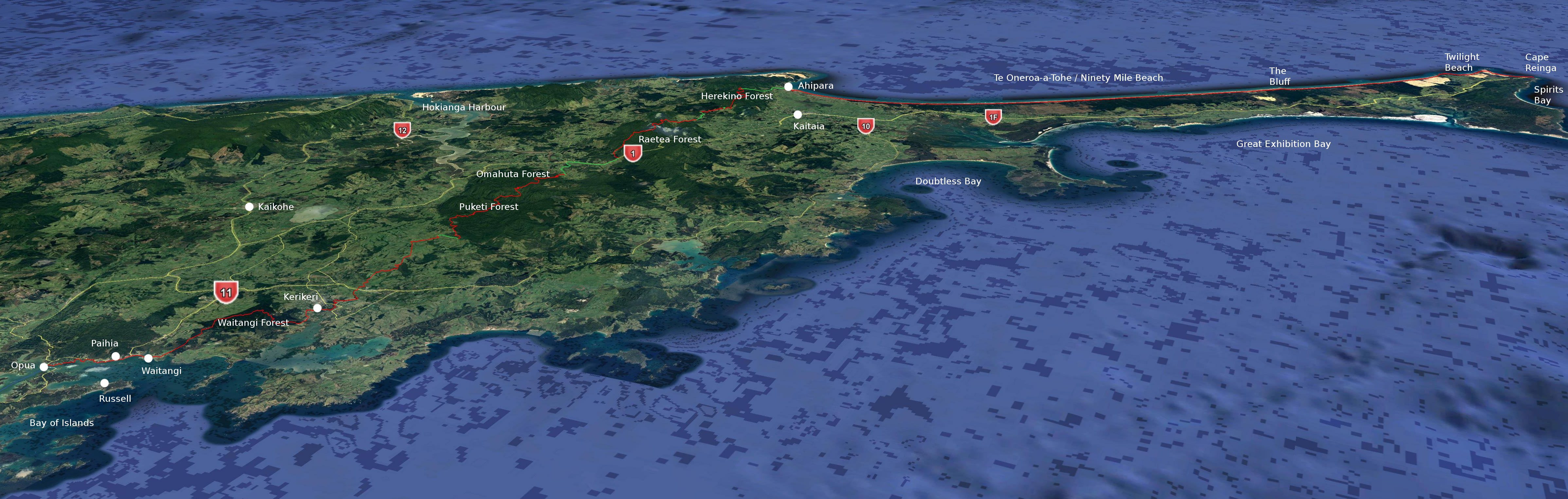 Ahipara to Cape Reinga: 100.5 km, 4 days (maps 7, 6, 5, 4, 3, 2, 1)