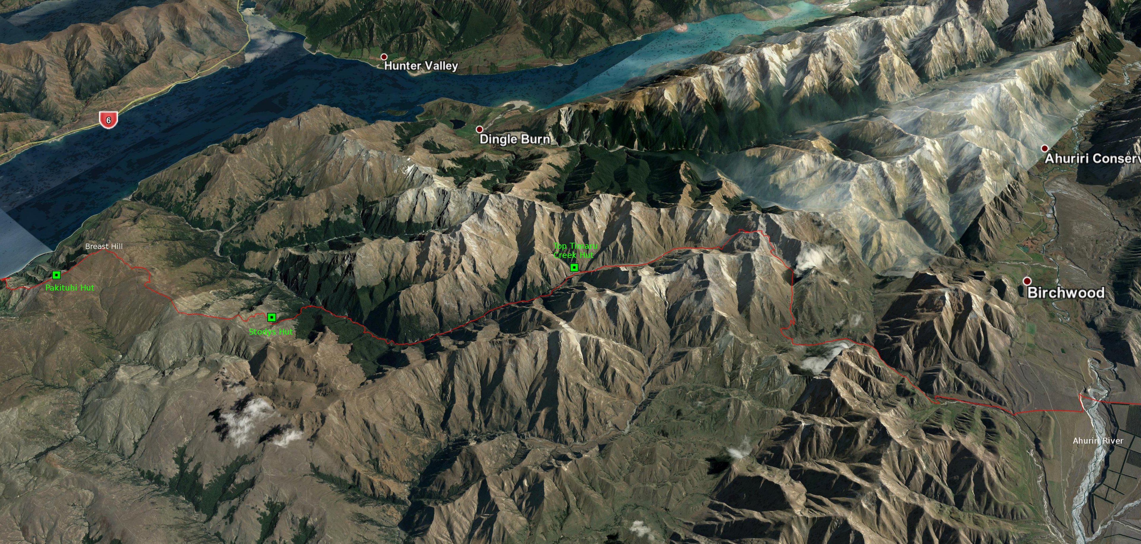 Lake Hawea to Ahuriri River via Breast Hill Track: 61 km, 3 days