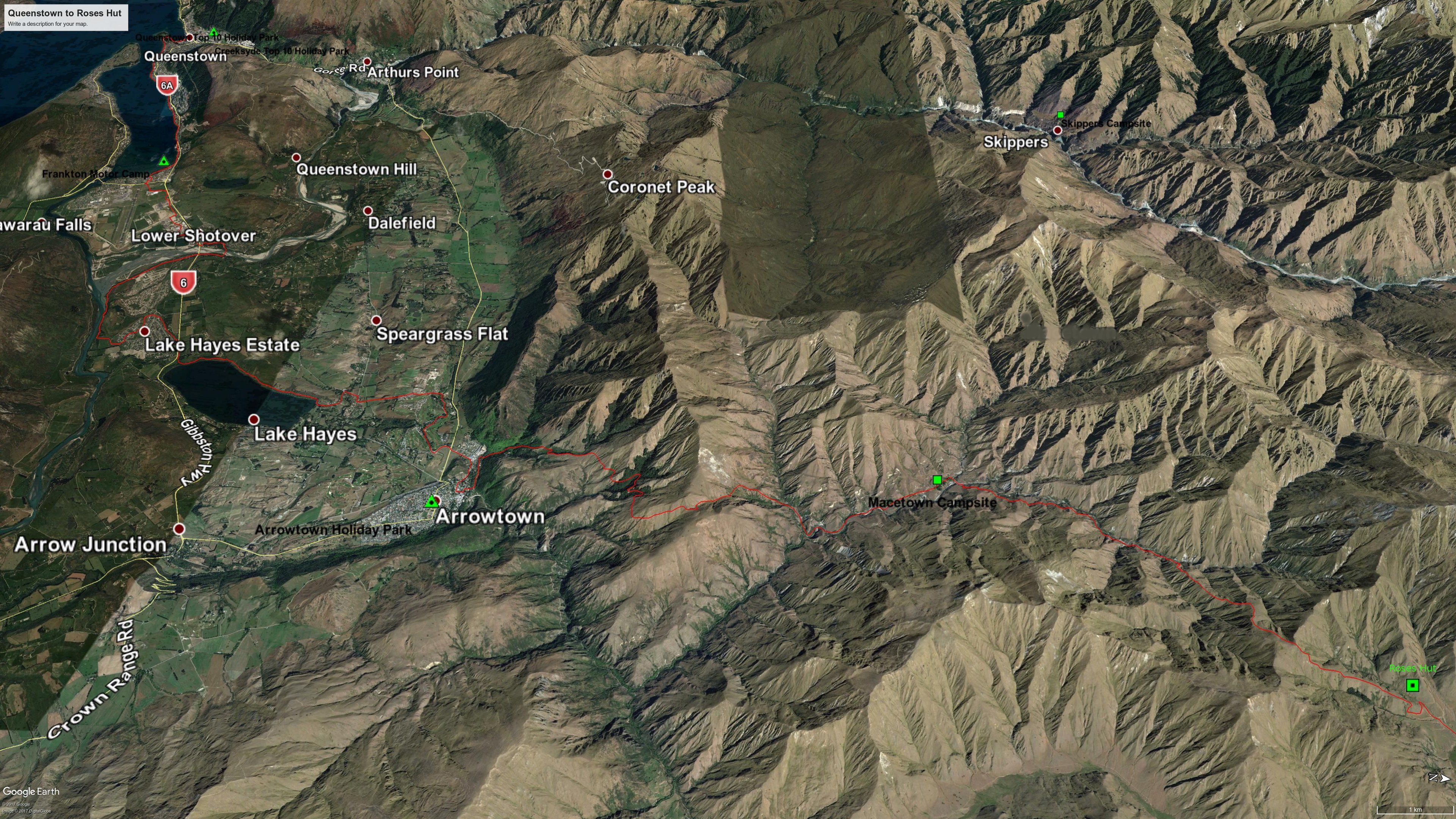 16. Arrowtown to Roses Hut: 9.5 hrs, 23 km (maps 139, 138)