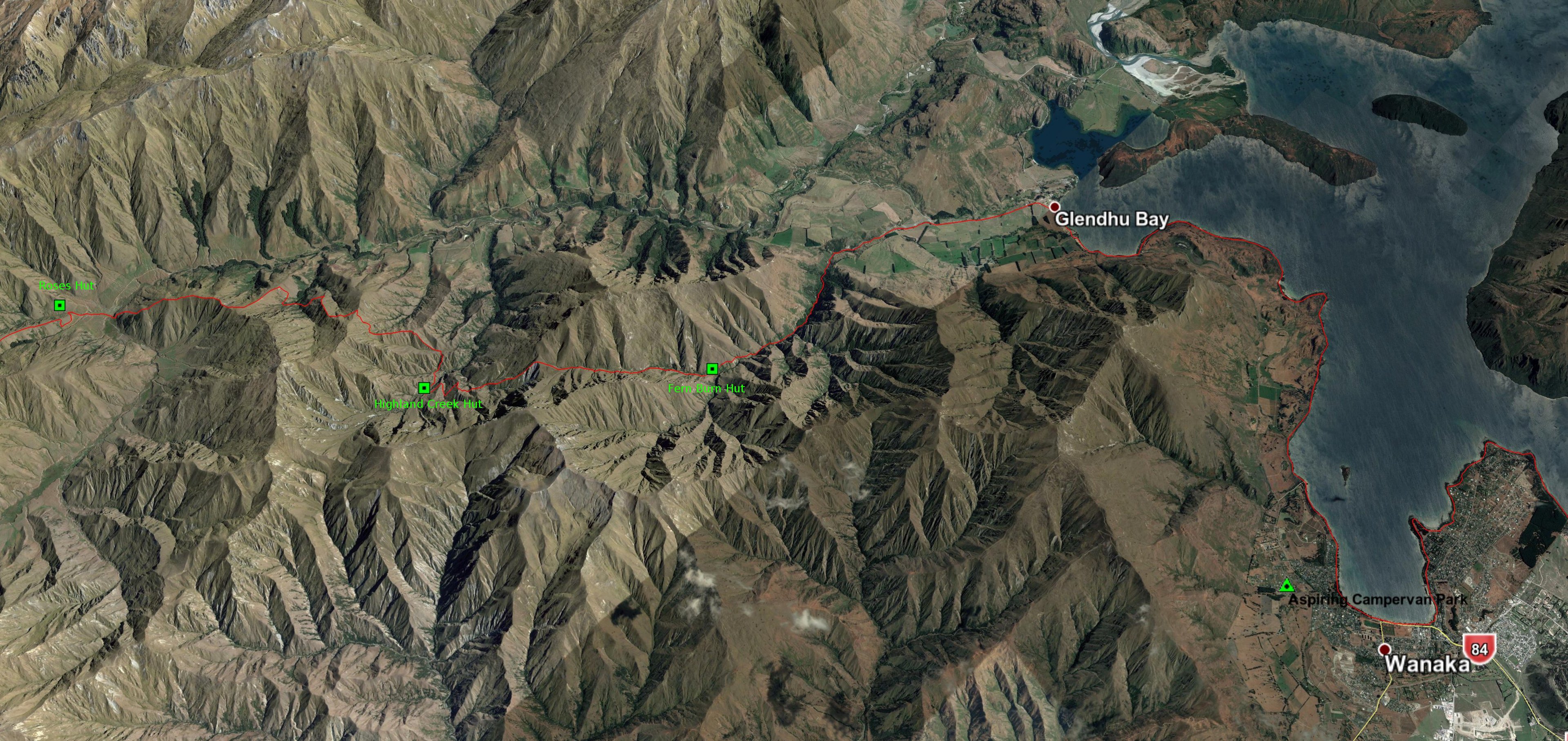 You’ve just climbed two major hills, and now there are two more. The first is a steep, tough climb up from Roses Hut over to Highland Creek Hut. You might want to stop at Highland Creek, and do 6 hrs 15mins to Glendhu Bay the next day, or do another 3.5 hrs to Fern Burn. From that hut you can skip the Glendhu Bay motor camp to get to Wānaka in one go.