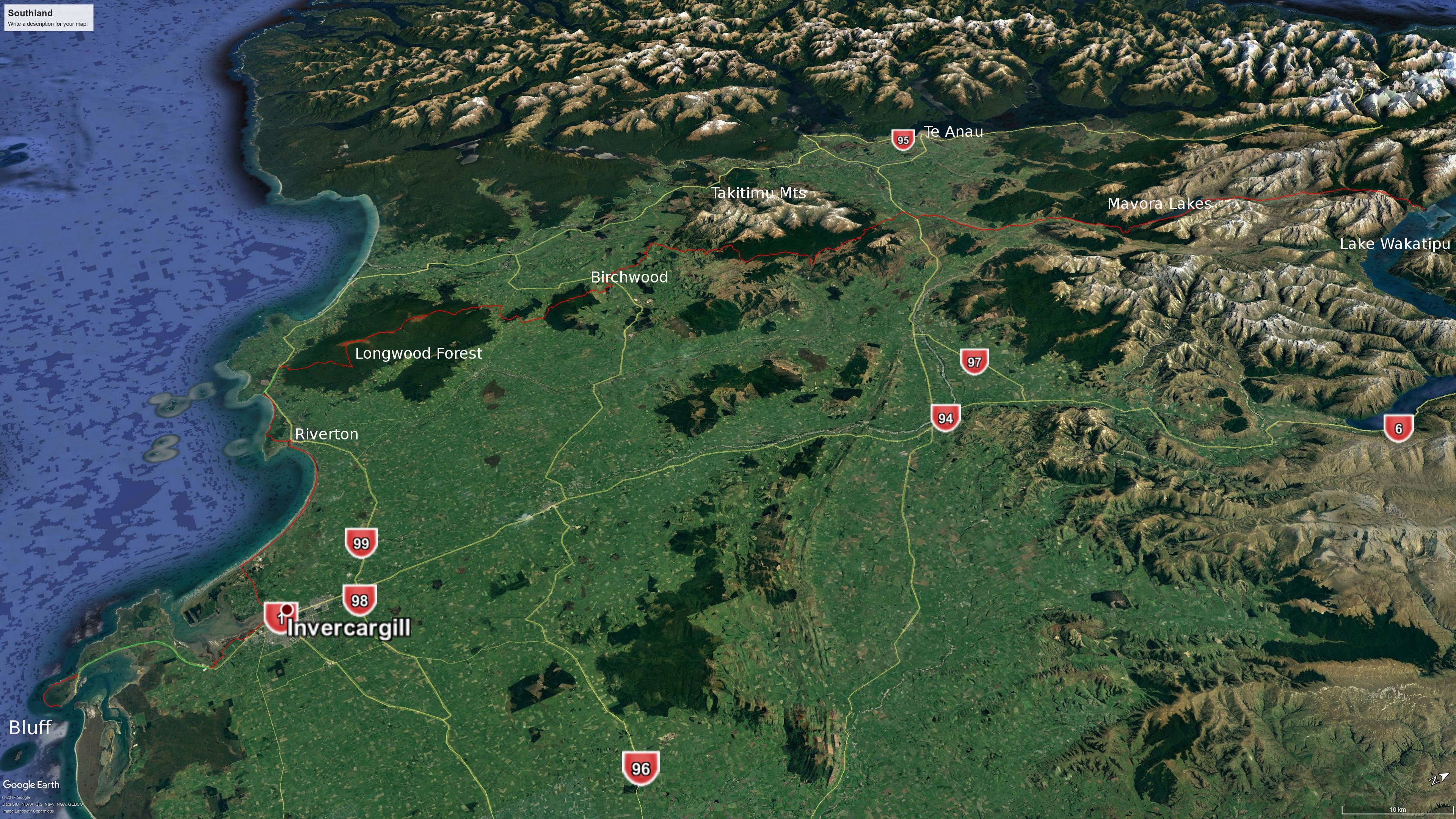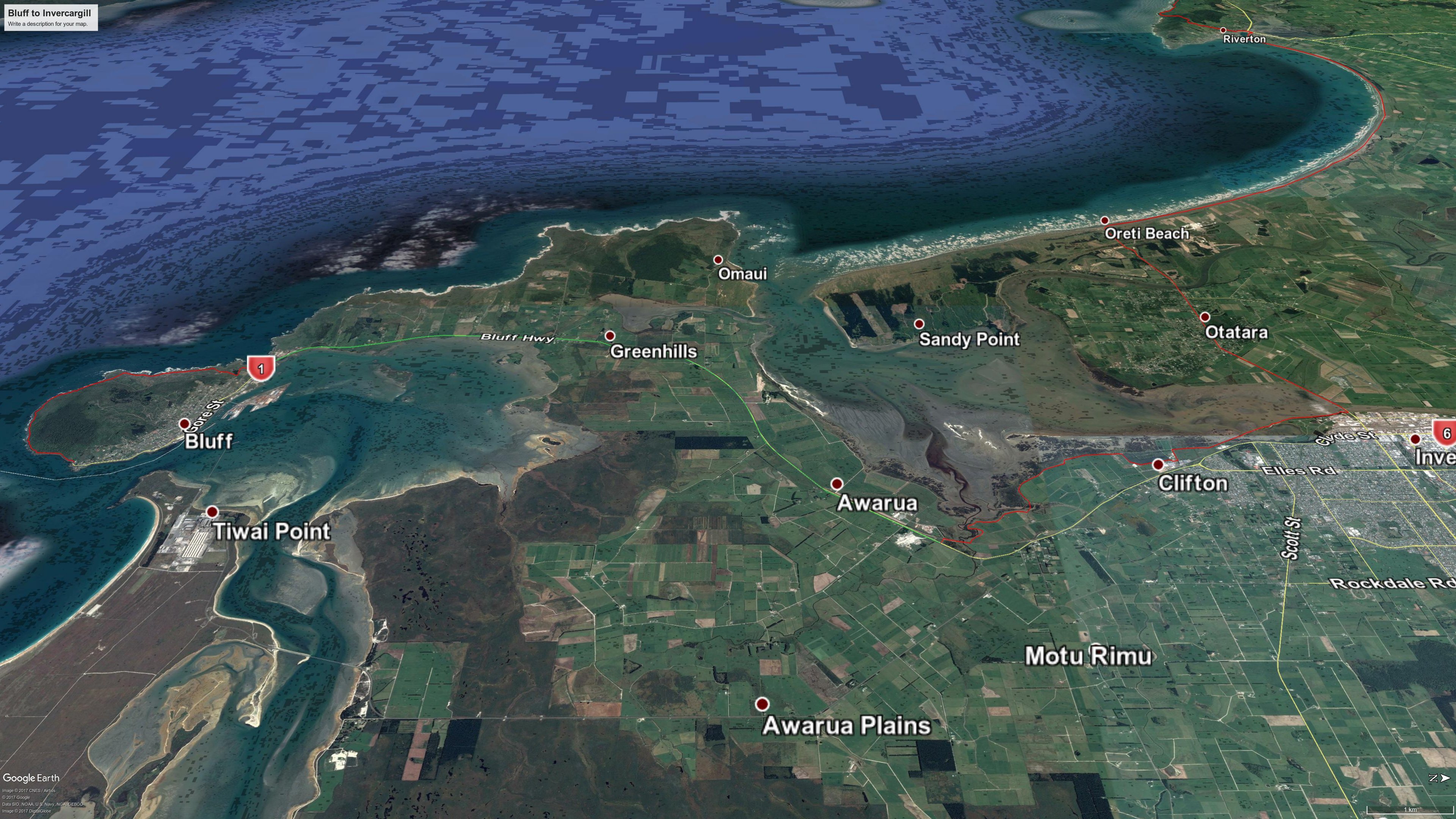 1. Bluff to Invercargill: 8.5 hrs, 34 km (maps 160, 159)