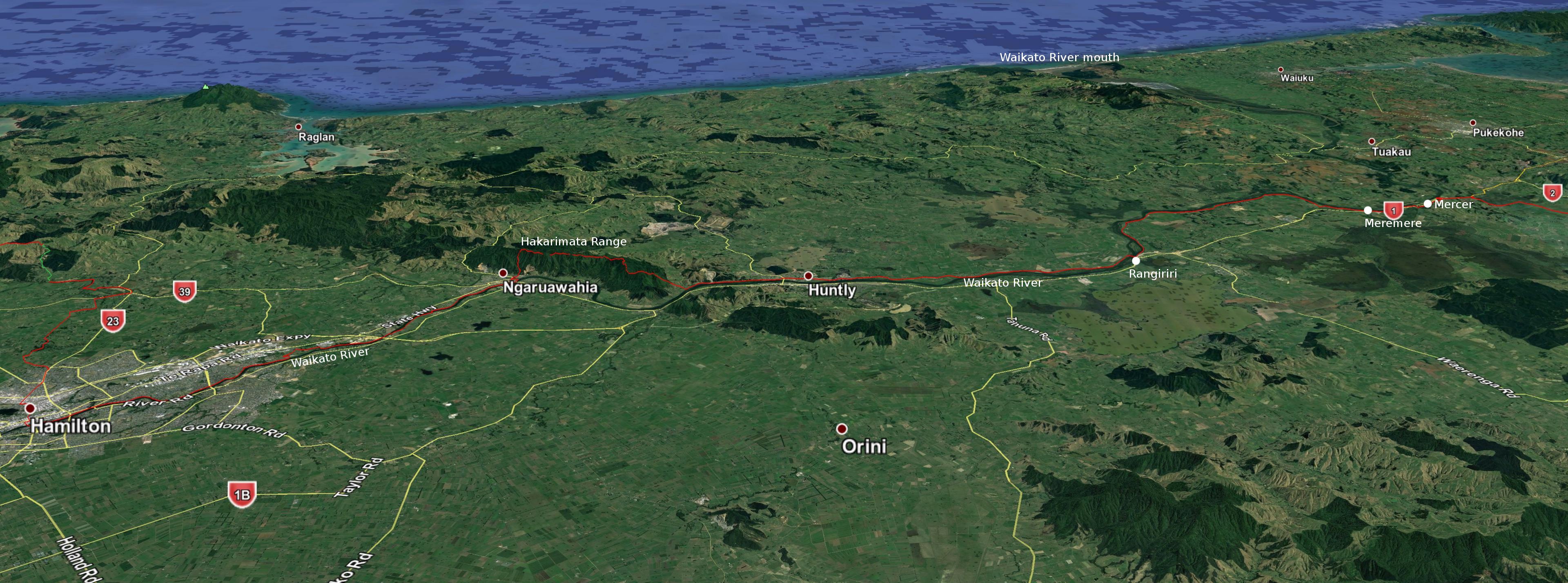 37. Huntly to Rangiriri: 4.5 hrs, 17 km (maps 37, 36)