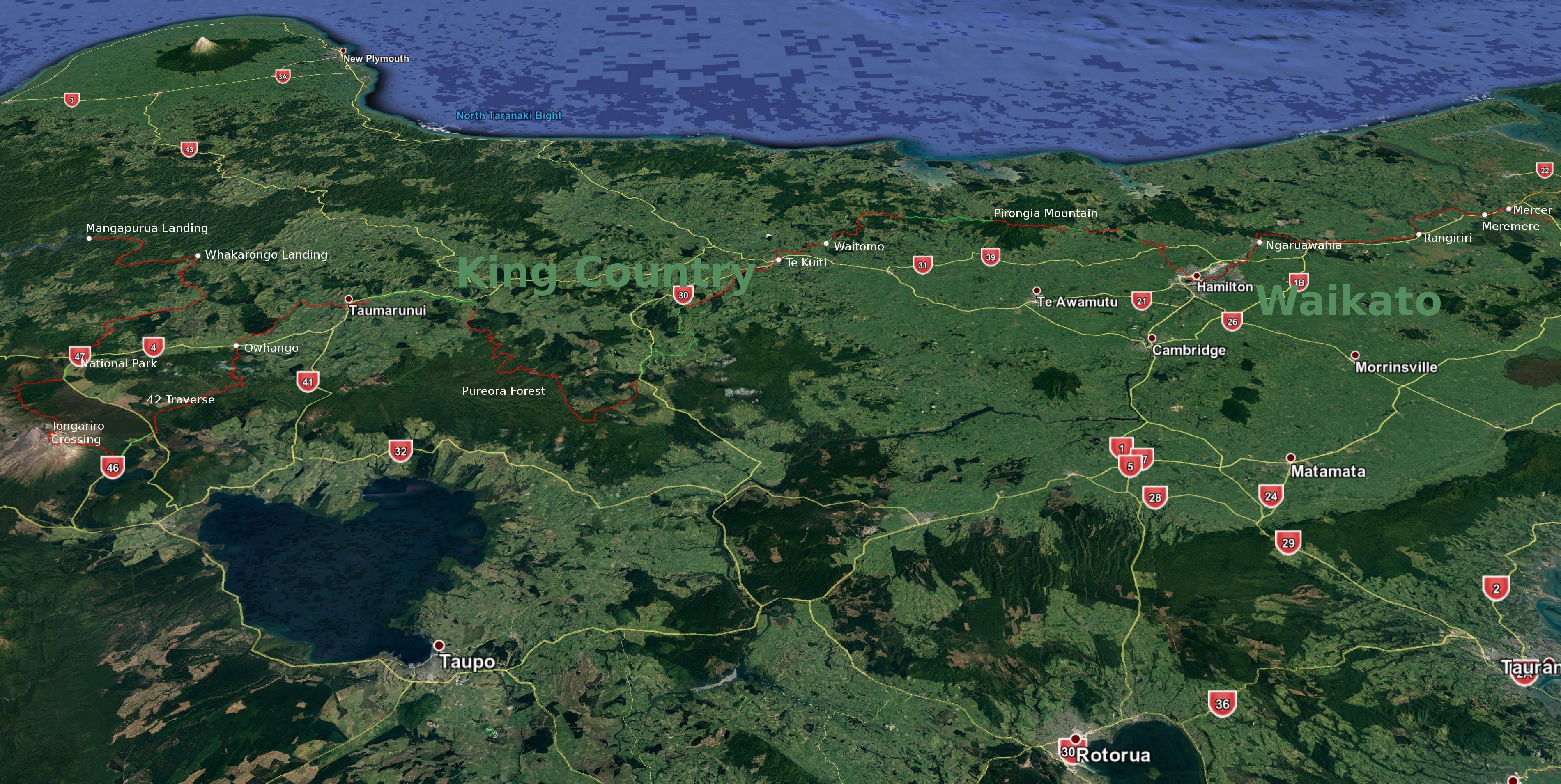 Te Kūiti to Hamilton via Pirongia Mountain: 123 km, 4–5 days