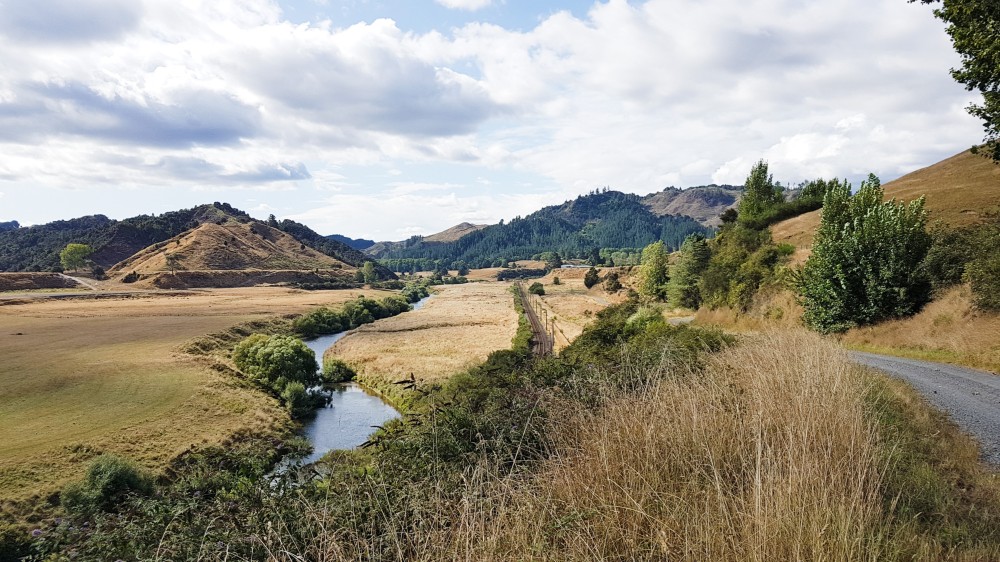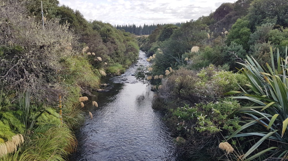 You begin 36.5 km of back-country road walking by heading west along the road from Pureora on Maraeroa Rd and after 3.5 km turning left into the fairly busy SH30. After 7.5 km turn right into the unsealed Mangaokewa Rd (with very little traffic). Keep left at all the turn-offs, including Allen Rd at the right after 9 km, and Waipā Rd after another 3 km. The road turns south for 2 km at Waipā Rd. It then turns west for 8.5 km before going steeply uphill on a sealed section. Mangaokewa North Rd branches off at right as the road turns on the hill. Turn right into this road. After about 3.5 km this becomes the Mangaokewa River Trail at a gate. About 200m before this at right is a campsite set up specifically for TA walkers by some wonderfully good-hearted farmers Sam and Laura.