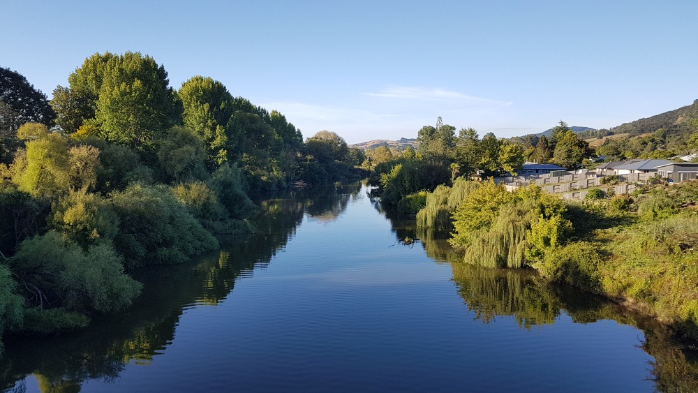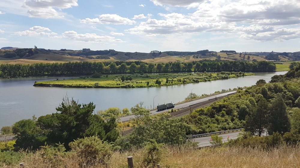If you continue around the river on the edge of Ngāruawāhia you will pass under the road, and then rail bridge, to come to the junction of two great rivers, the Waikato and Waipā, which once served as important canoe routes. Before this there is a pathway directly up to the River Bed Motel though.