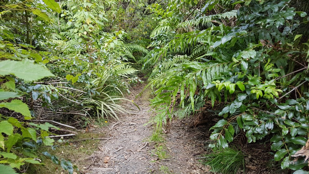 This is another slow track that is poorly marked at times, so it helps to have your GPS on. You leave town and head into the Brook Park Reserve which has noted tree collections including black walnuts, Pinus radiata tree crops, rhododendrons, and native trees such as kauri and rimu. There is a flash-looking café (Boscoe Café) by the entrance. (A path along the Mangakokewa Stream runs through town and exits by the café, so this is an alternative method of reaching here.) As with so many public parks, there is a maze of paths here. I don’t know if TA signs have been put on them yet, but I got completely confused. Basically, head uphill and skirt around Pehitawa Mast Hill. The park is a pleasant enough place, but if you want to save time get out your mapping app and use GPS.