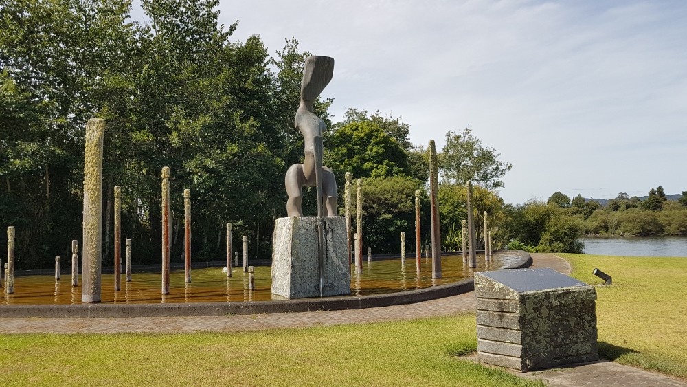 Continuing on the other side of the river from Huntly, keep going north on Harris St. Keep right when it forks into Hetherington and Te Ōhāki Rds to stay on the river side of the huge Huntly Power Station. The trail passes through bush in a sculpture park for 200m in front of the power station then continues on Te Ōhāki Rd.