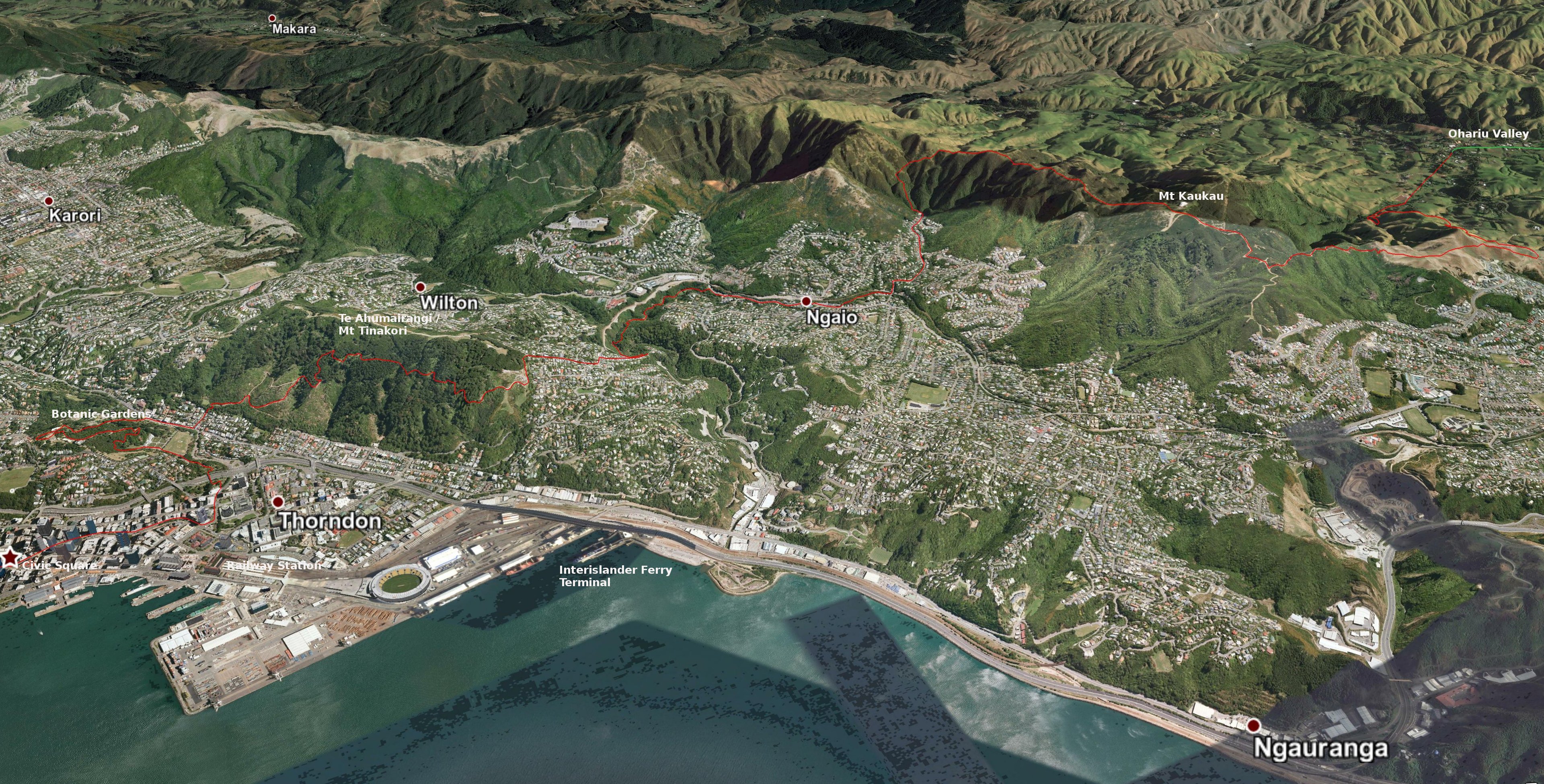 3D view south-west: Civic Square to Ōhariu Valley
