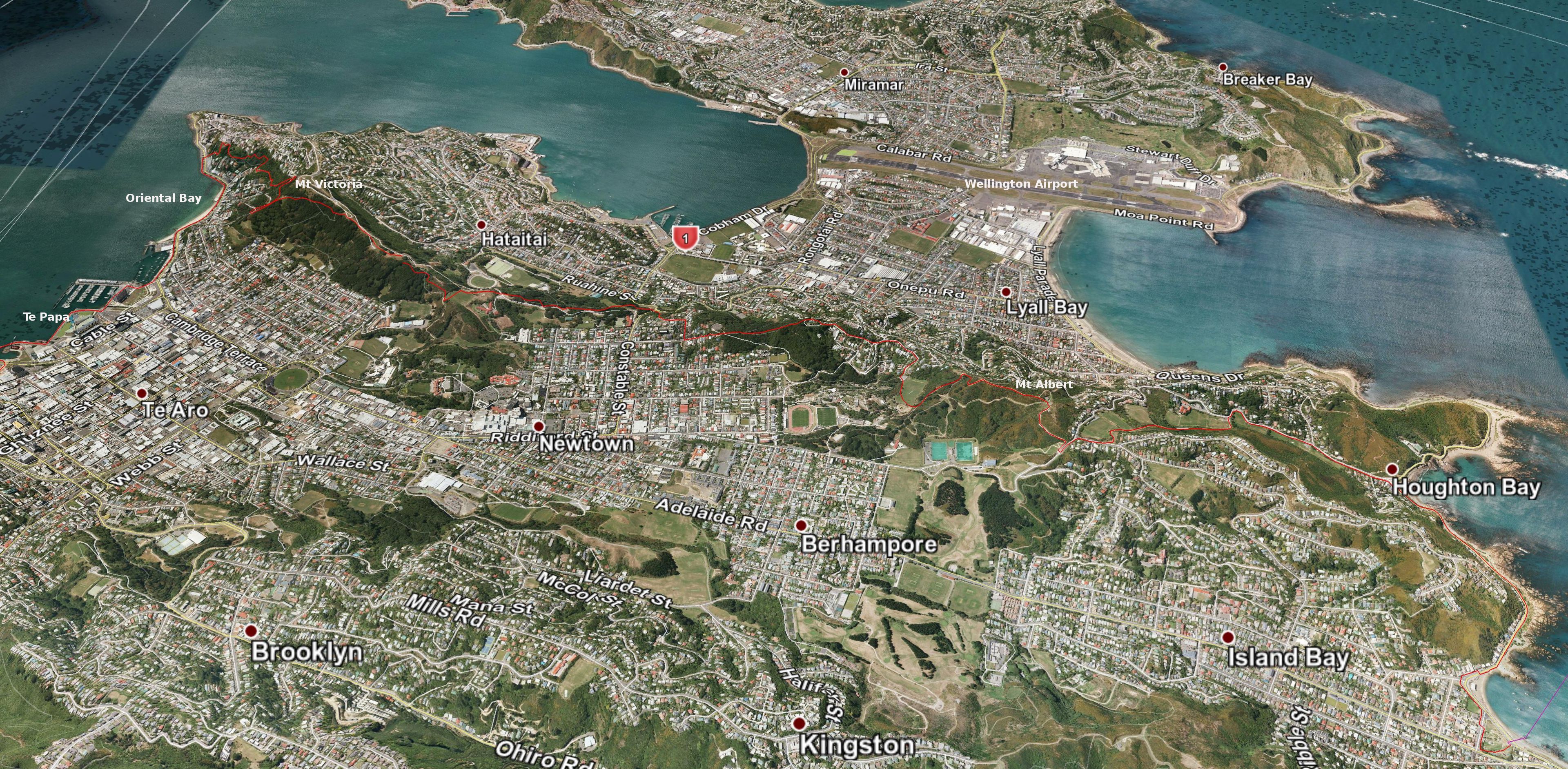 3D view east: Island Bay to Civic Square
