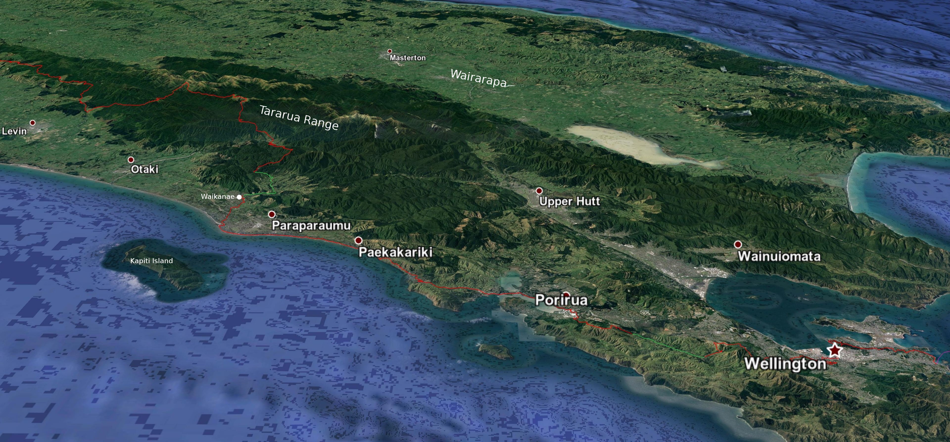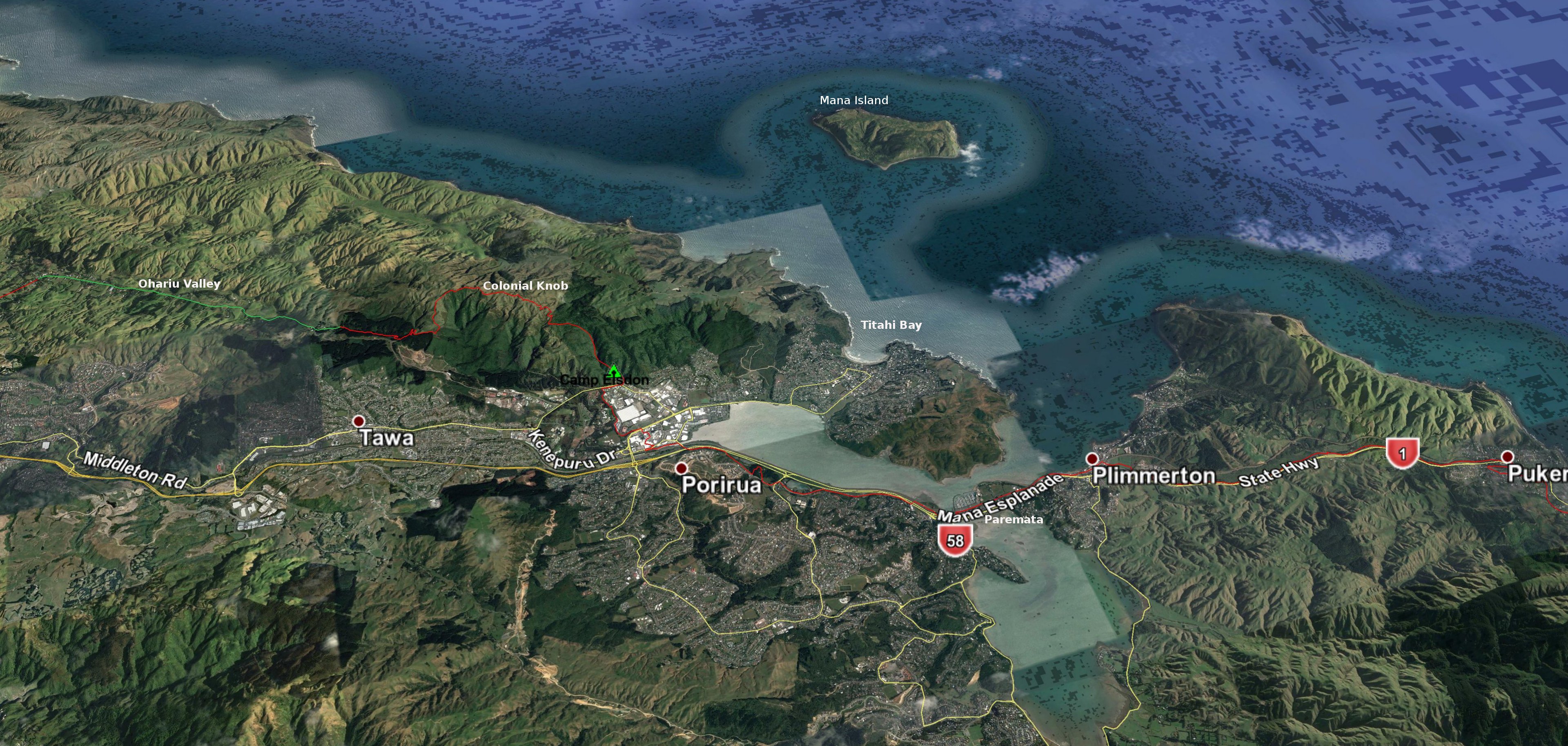 3D view east: Pukerua Bay to Reikorangi