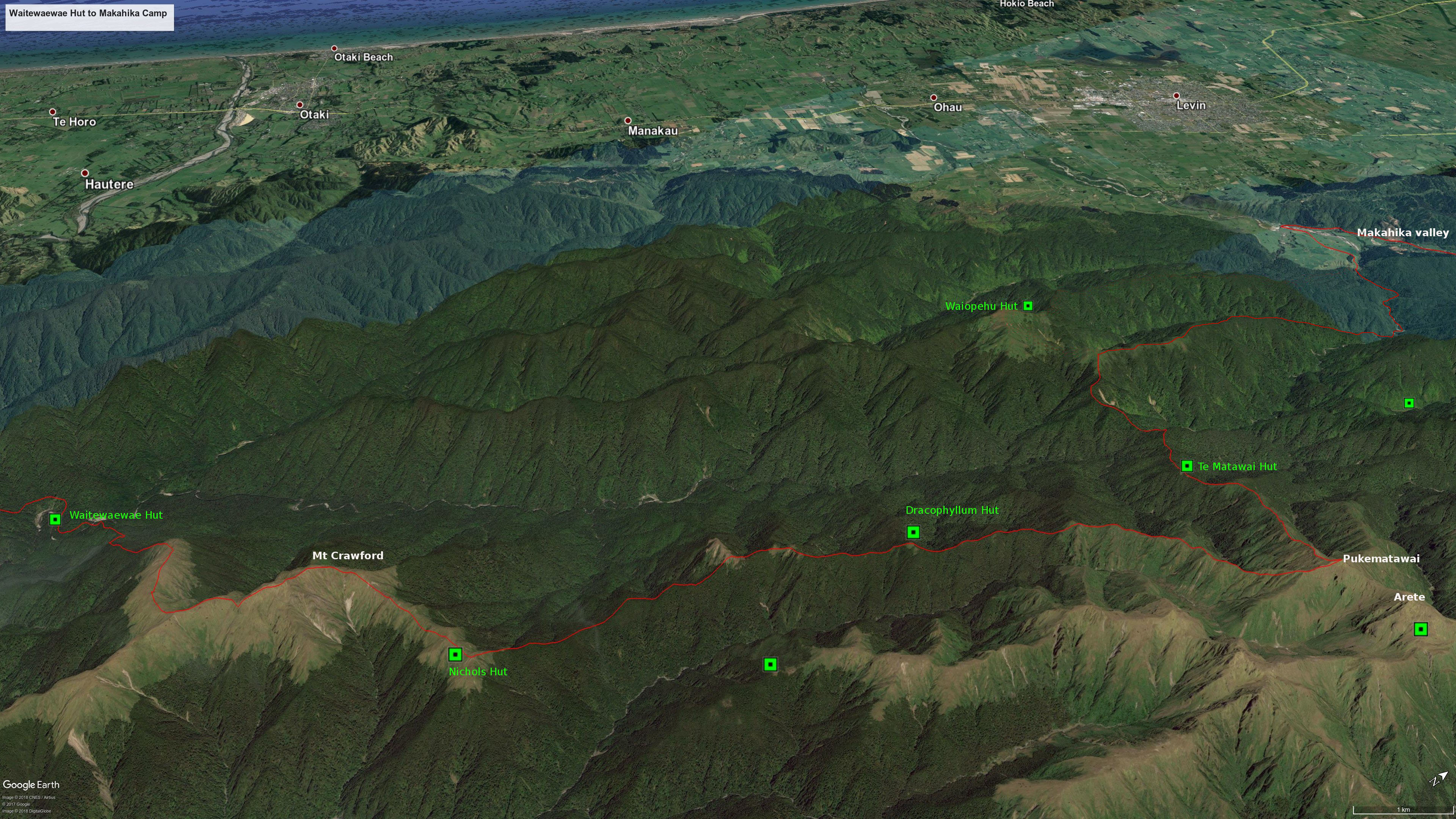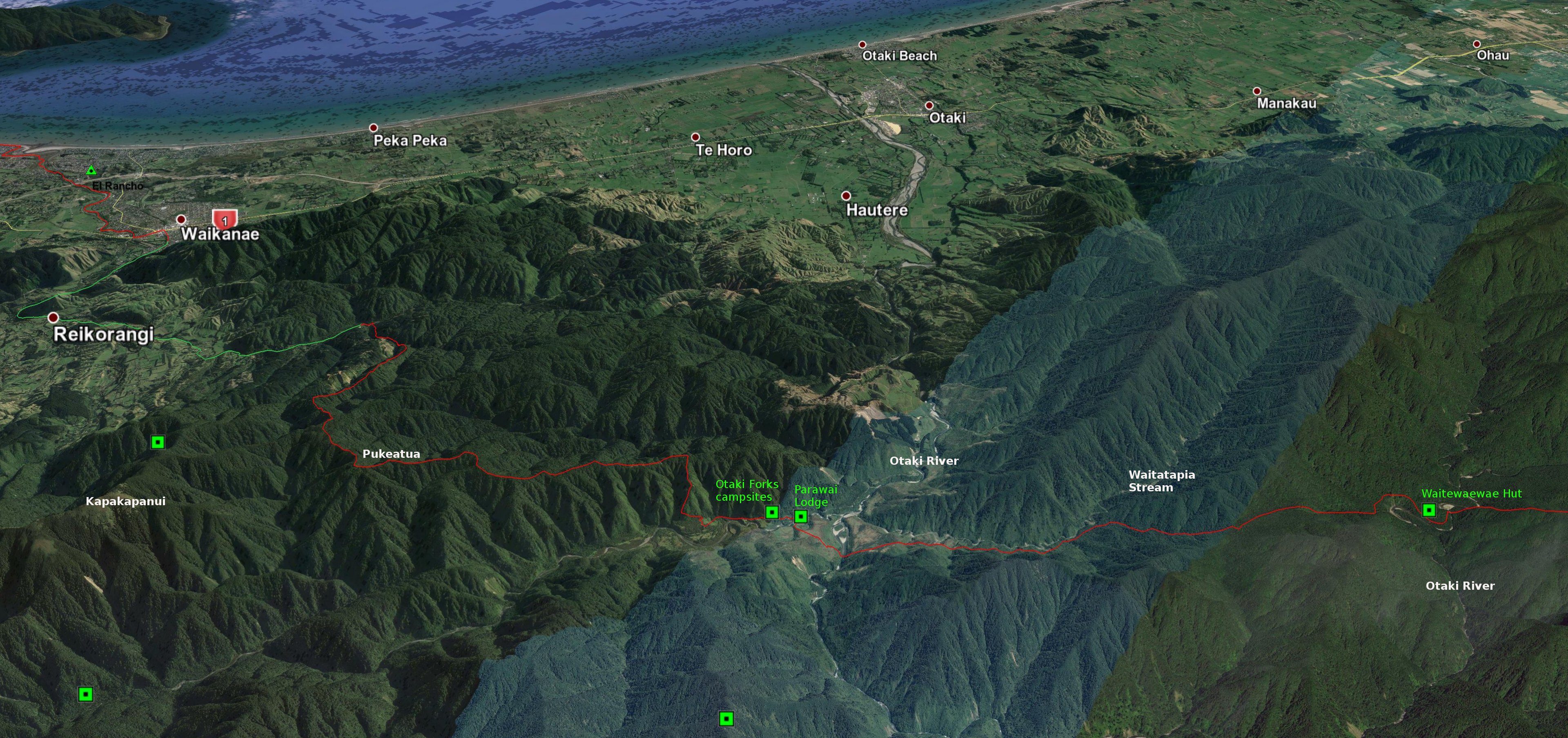 3D view north-west: Reikorangi to Waitewaewae Hut